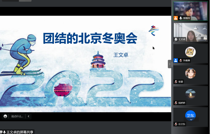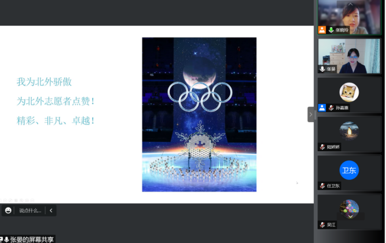 六合宝典下载 副教授张晏老师分享了她在承担的本次冬奥会志愿者翻译培训官的工作历程。她从接到通知、训前准备、正式培训、答疑解惑、训后支持、赛时关注等环节回顾了自己与北外培训教师团队高质量、高标准完成培训任务的整个过程。张晏老师也分享了自己在培训工作中的心得感悟,为在整个北京冬奥会、冬残奥会中北外学子的优秀表现感到自豪和骄傲。