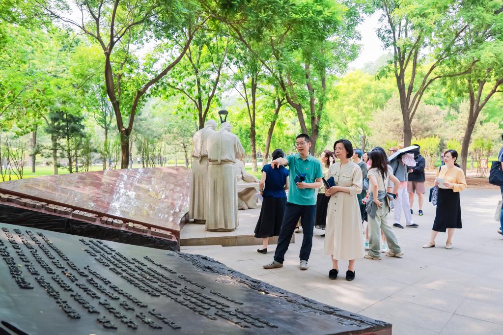 党总支纪检委员张晓玲、教职工党支部书记于芳、研究生第二党支部书记曹芳凝的讲解下,师生党员们详细了解公园内的“通州第一党支部”、“密符扇”和“甘棠镜鉴”等主题雕塑的寓意和背后的故事。这种多角度、沉浸式的学习使师生党员们深刻感受到了廉政文化的历史渊源和现实意义,深化了思想认同和价值认知,在潜移默化中拧紧了思想总开关,切实增强了纪法观念、廉洁意识。在参观过程中,师生们纷纷表示,这样的学习方式既生动又直观,让人印象深刻。参与活动的师生党员对和“通州第一党支部”和“密符扇”两座雕塑印象深刻,纷纷发表了思想感悟: