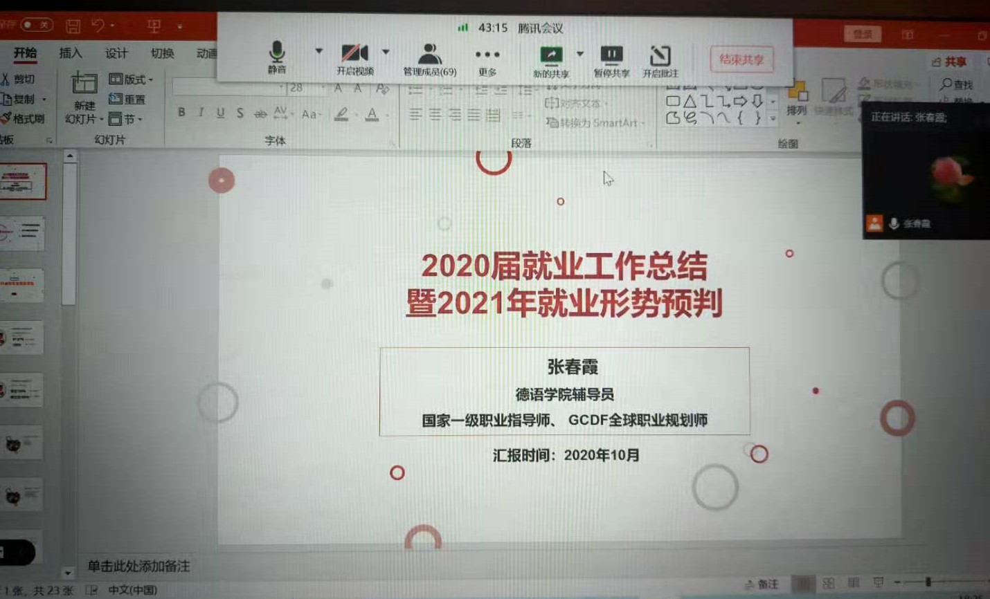 召开“2020年就业总结及2021年就业形势研判”线上会议。70余名研究生参加了会议。辅导员张春霞总结了六合宝典下载