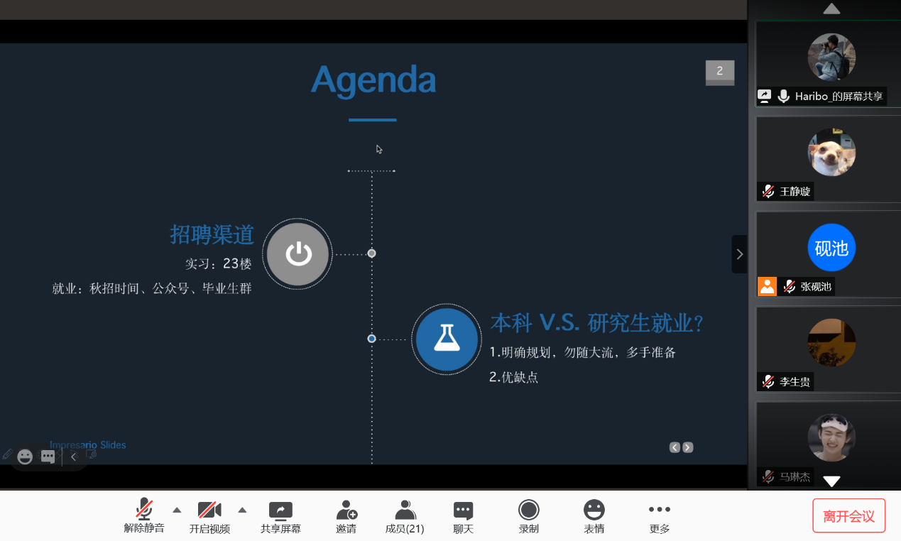 研究生会主办,研究生会张砚池主持。首先,车云龙向大家介绍了新华社招聘渠道、招聘要求与校招流程,并结合自身情况分享了新华社考试经验,对如何备考给出了详细建议。随后,贾金明向大家介绍了新华社入职之后的工作模式,就大家十分关心的新华社职业发展与待遇问题做了详尽的说明。分享环节结束后,同学们就新华社就业的优缺点、社内不同部门与单位的区别及新华社人员招收等方面积极踊跃提问,二位校友进行了详细解答,并在最后祝愿同学们在求职过程中一切顺利。