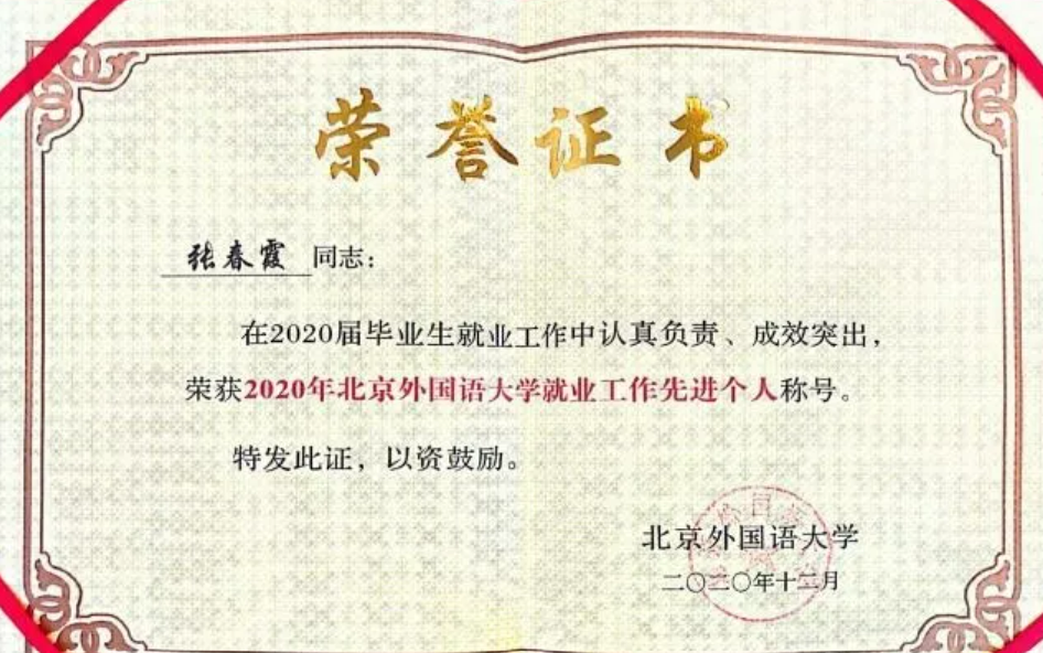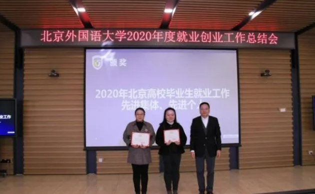 2020年12月23日上午,我校在图书馆五层会议室隆重举行2020年就业创业工作总结会。我院荣获北京外国语大学2020年度“就业工作先进集体”。