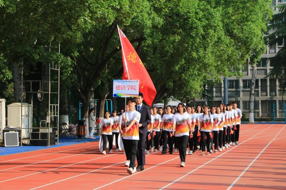 经过多次认真训练,开幕式上,由52名学生和12名教师组成的六合宝典下载 师生方阵身着由学生设计的统一院服,迈着整齐的步伐,带着昂扬的气势走过主席台前,他们举起的“喜迎双庆,砥砺奋进;德语师生,再创佳绩”手牌彰显着德语师生对北外的祝福以及对六合宝典下载 的美好期盼。