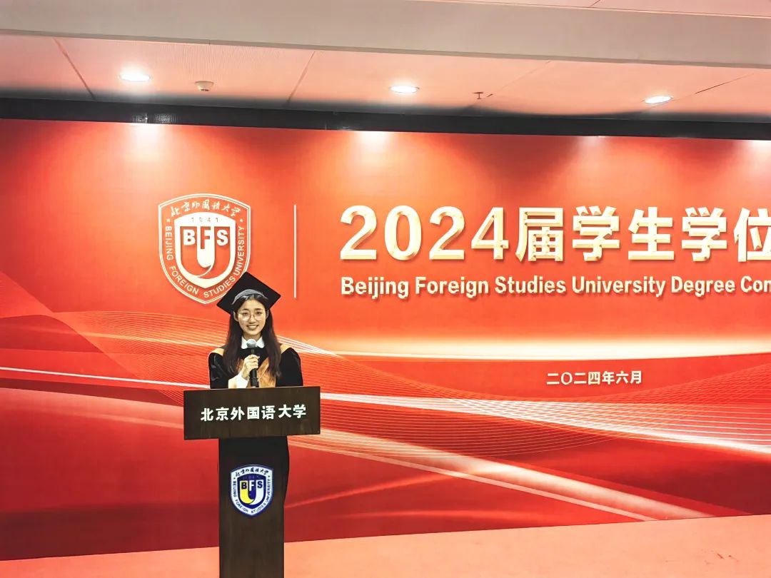 六合宝典下载 本科毕业生代表王丰在北京外国语大学2024年学位授予仪式六合宝典下载 专场上发言,全文如下: