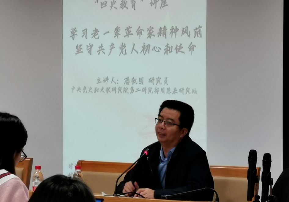 教工党支部和学生党支部联合邀请潘敬国研究员为全院党员师生及入党积极分子举办了题为“学习老一辈革命家精神风范,坚守共产党人初心和使命”的讲座。