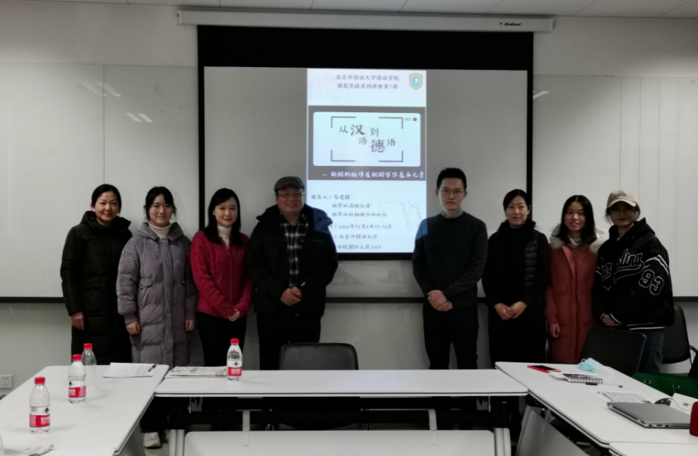 为师生奉上了一堂既高富信息量,又妙趣横生的新闻写作讲座。应邀参加这场题为“从汉语到德语——新闻的编译及新闻写作基本元素”的讲座的专家还有即将赴德担任新华社柏林分社副社长的黄燕老师和即将赴德工作的新华社记者胡尊元老师。