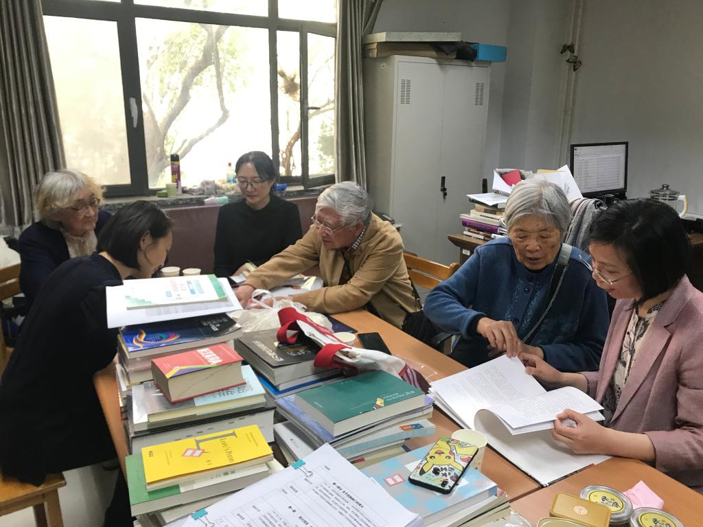 党总支副书记、院长吴江陪同下参观了校史馆,并向校史馆赠送了《德53同学情——53届德语班回忆简录》。校史馆、档案馆馆长姚燕接待了三位校友,举行了小型的赠送仪式,并与校友座谈,共同了追忆了校友们读书时的峥嵘岁月。