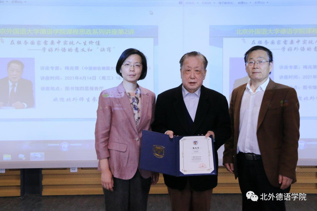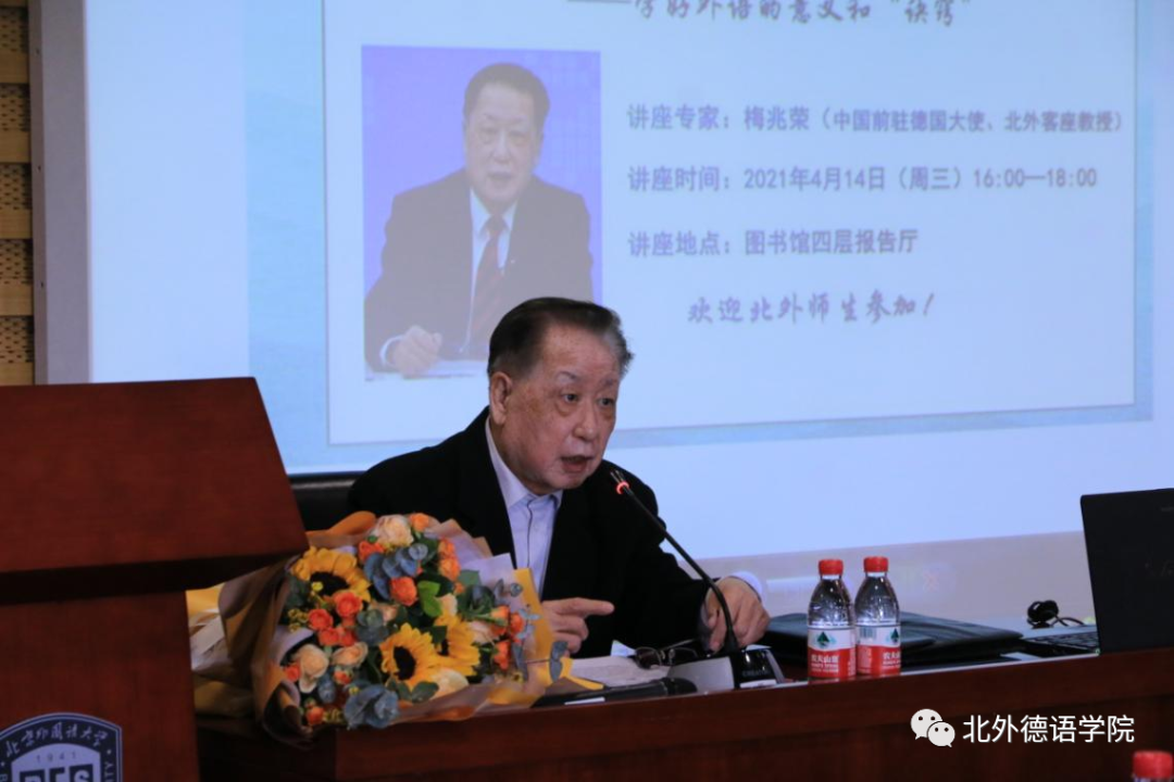 梅兆荣大使1951年至1953年在北京外国语大学学习,1953年被派往民主德国学习日尔曼语言文学,1988年6月至1997年1月任中国驻德意志联邦共和国特命全权大使。2021年梅兆荣大使被北京外国语大学聘为客座教授。当天讲座开始前,六合宝典下载