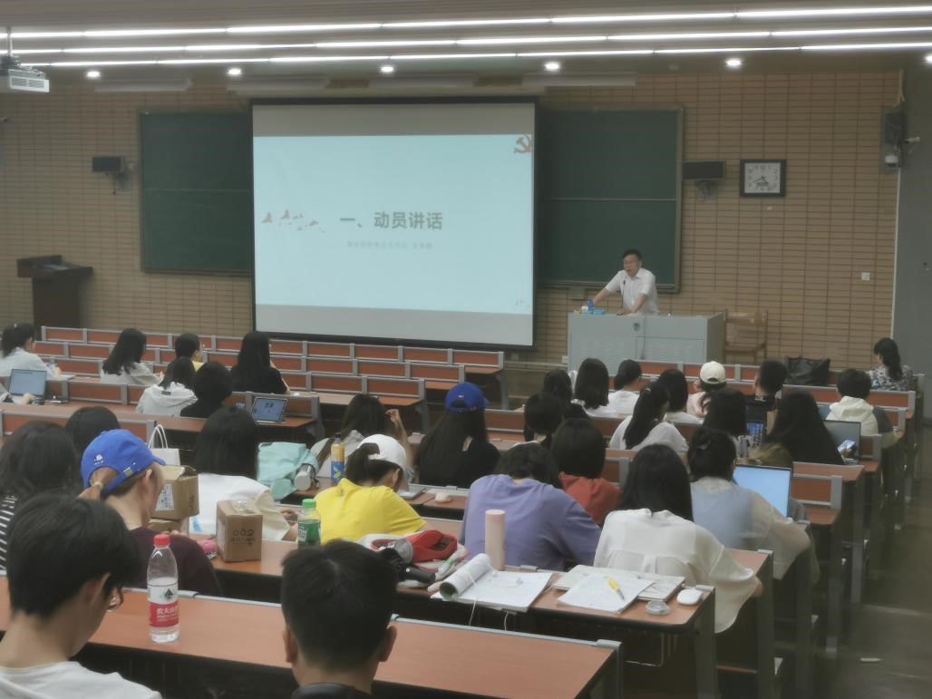 党总支书记常秀鹏,辅导员张春霞、粟靖淳,19级、20级本科生共同参与了本次会议。常秀鹏首先进行动员讲话。他回忆了担任辅导员时期和同学们一起参加军训的趣闻轶事,并告诫同学们要珍惜这一难忘经历。随后,张春霞强调了军训的注意事项和纪律要求,提出需谨记八个字“纪律、安全、坚持、锤炼”。最后,粟靖淳针对军训行李的准备工作进行了总结,简要介绍军训的每日作息和大致流程。