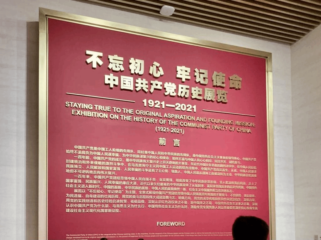 馆内的主题展览大气宏博,振奋人心,通过大量历史资料图片、弥足珍贵的文物、详实丰厚的档案以及多媒体的呈现手段,全方位、全景式、史诗般地展现了中国共产党波澜壮阔的百年历程。