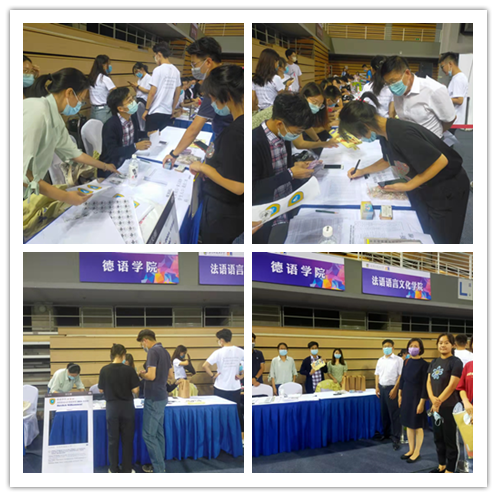 团总支、本硕学生会同学到体育馆喜迎新生,为新生发放了迎新纪念品和新生入学教育周安排表等材料。