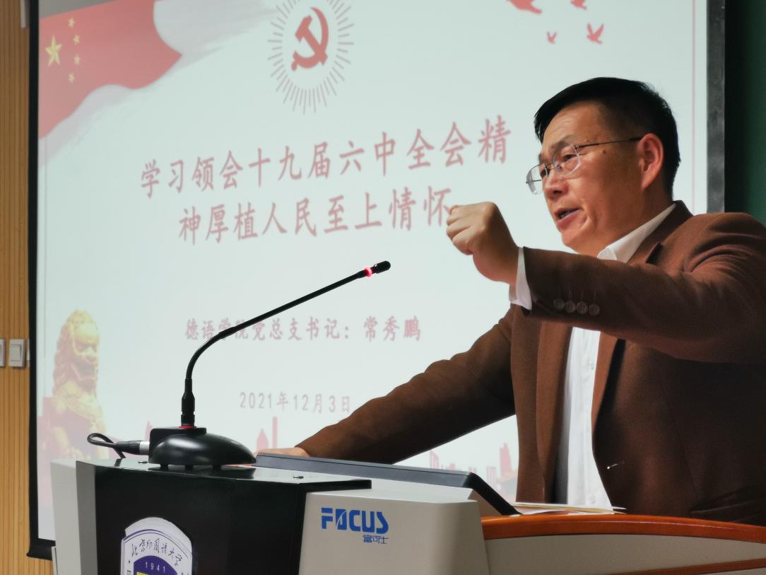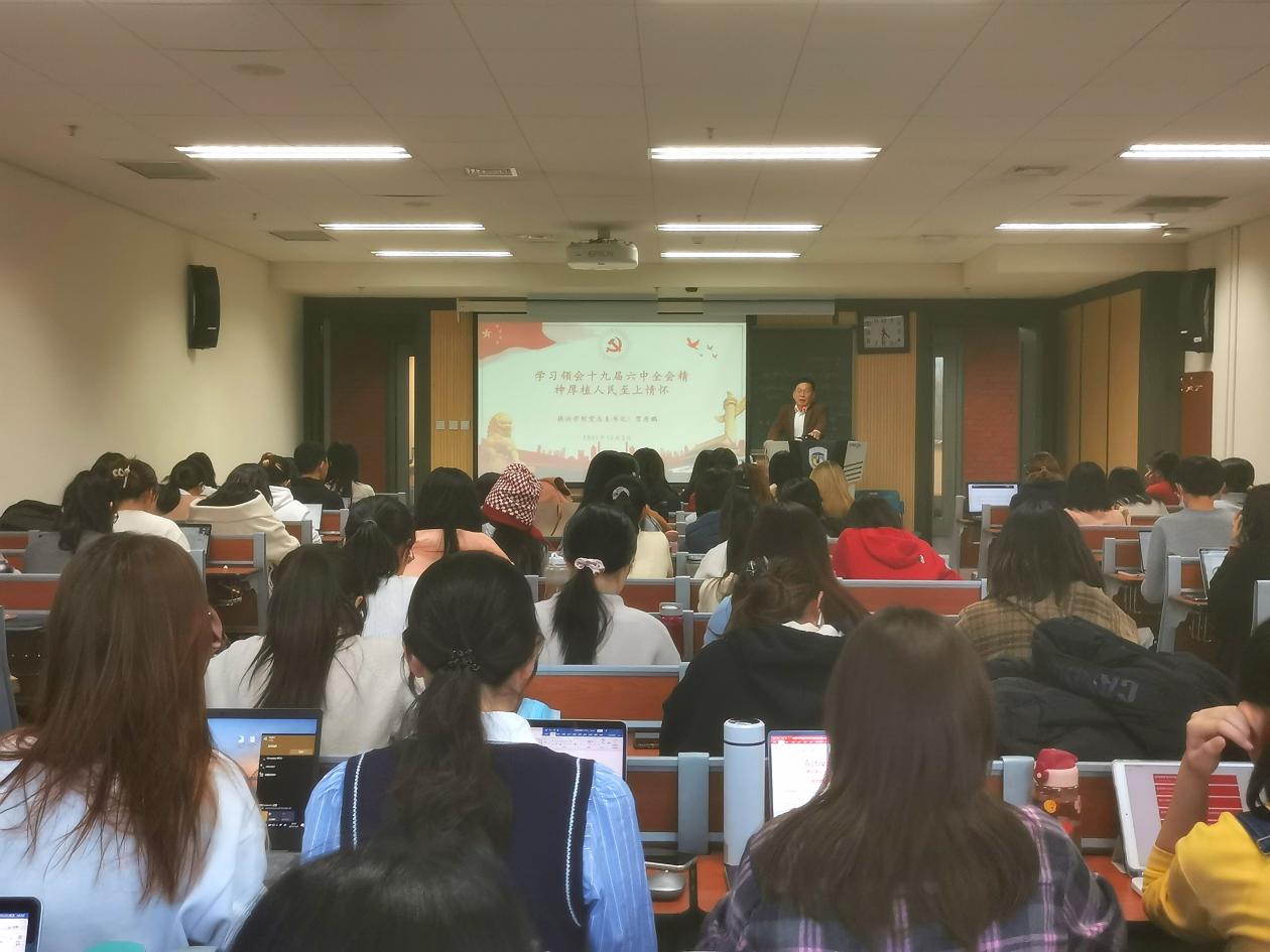 党总支书记常秀鹏为本硕博学生党员、入党积极分子80余人讲授了以“学习领会十九届六中全会精神,厚植人民至上情怀”为主题的党课。辅导员张春霞、粟靖淳参加了学习活动。