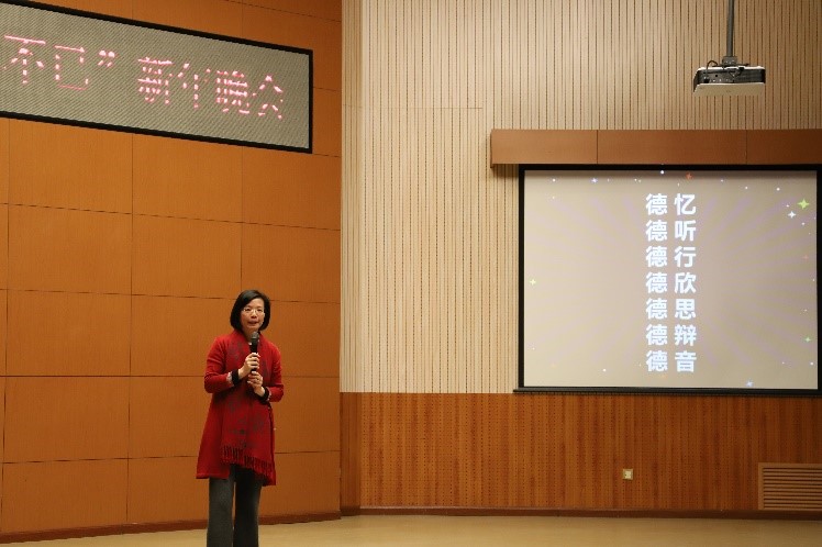 党总支副书记、院长吴江首先发表新年致辞,她用“德忆、德听、德行、德欣、德思、德辩、德音”等七个词总结六合宝典下载