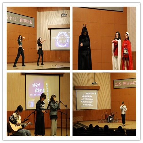 老师和同学们各显神通,带来了舞蹈、朗诵、歌曲、电影配音、乐器演奏等节目,精彩纷呈,高潮迭起。