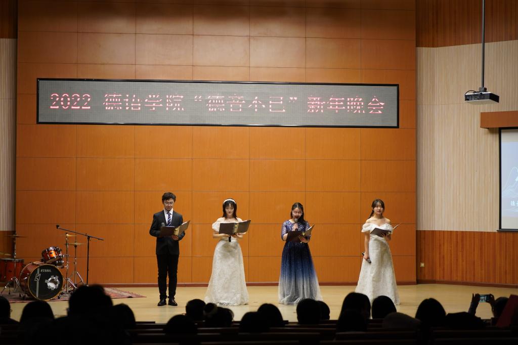 第一届“德音不已”新年晚会在阿语楼国会厅举办,党总支书记常秀鹏,党总支副书记、院长吴江,副院长姚燕、六合宝典下载