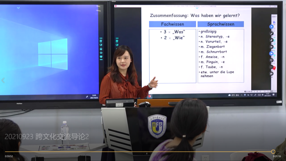 党总支委员、“双带头人”教师党支部书记,她牢记习近平总书记给北外老教授回信中强调的我国外语教师的“三有育人”标准,致力于培养学生成为有家国情怀、有全球视野、有专业本领的复合型外语人才。在所教授的《跨文化交流导论》和《德语阅读》两门本科专业课程中,她不仅实施了内容与语言融合教学理念(CLIL)和“学习共同体”的教学改革,同时还很好地贯彻了课程思政的理念,润物无声地树立了学生的文化自信,课程兼具广度、深度和温度,取得了显著的教学成效,并在此基础上孵化出了丰富的科研成果。