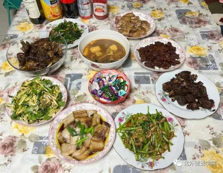 教师们积极参与,各显身手,纷纷晒出了自己或家人的拿手绝活,中西美食,南北佳肴,各地菜系,应有尽有。