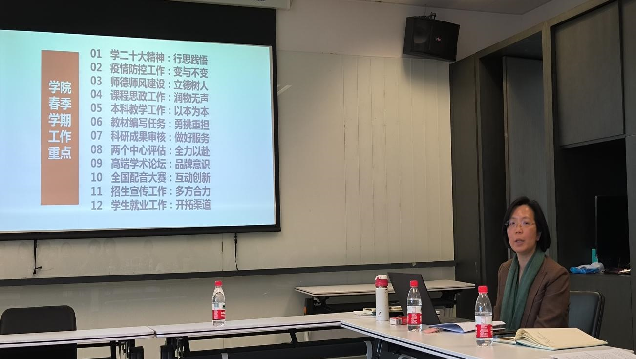 春季学期的工作重点,要围绕“行思践悟”深入学习二十大精神,疫情防控工作处理好“变与不变”,落实“立德树人”狠抓师德师风建设,研究“润物无声”开展课程思政工作,坚持“以本为本”,做好本科教学工作,“勇挑重担”完成教材编写任务,“做好服务”完成科研成果审核,“全力以赴”开展两个中心的评估工作,秉承“互动创新”办好第五届全国高校本科生德语配音大赛,树立“品牌意识”筹备好第二届德语学科区域国别研究高端学术论坛,“多方合力”做好招生宣传工作,“开拓渠道”助力学生就业工作。