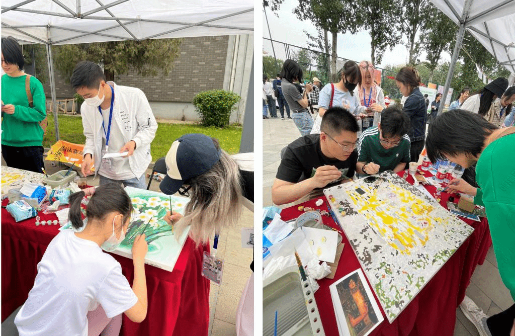 研究生会学术文体部的展台吸引了不少同学,还包括许多外国留学生。在这儿,可以和大家一起绘制一束惟妙惟肖的水仙花,或临摹奥地利画家克利姆特(Gustav Klimt)的著名代表画作,或是亲手DIY一幅涂鸦,画下今日心情,将这份珍贵的记忆留存于纸上。