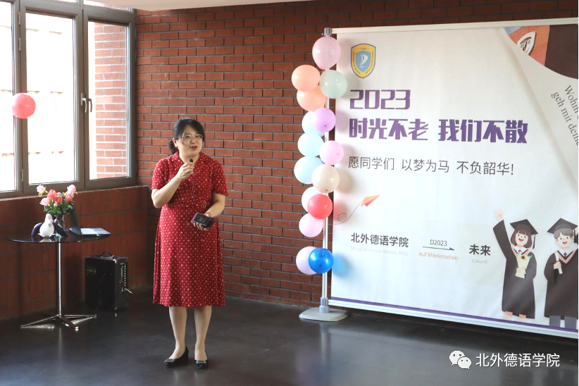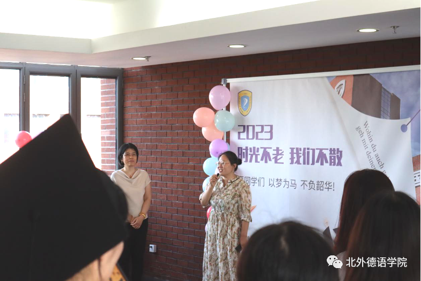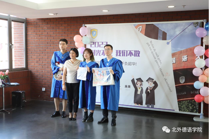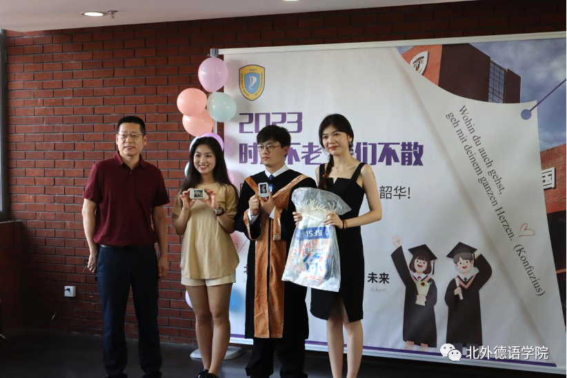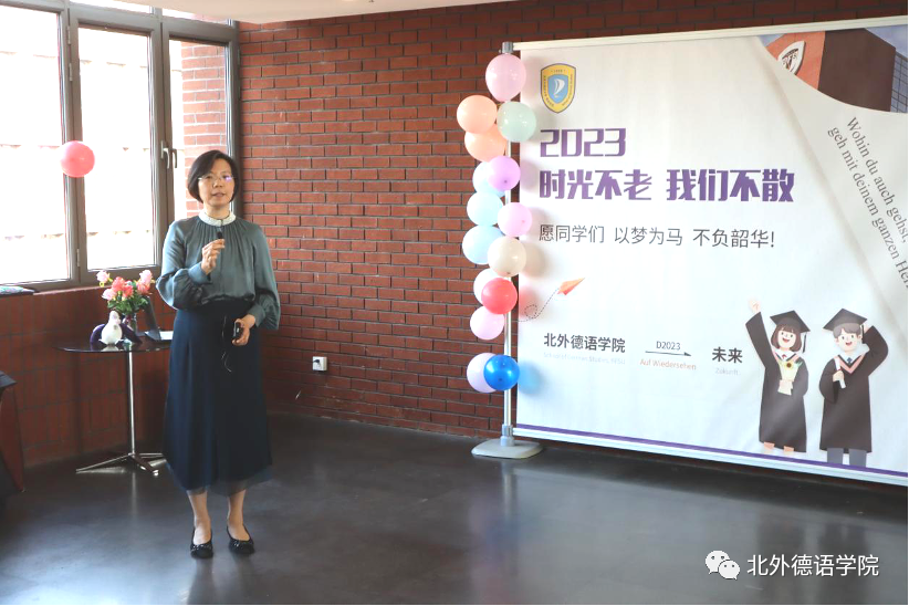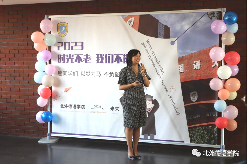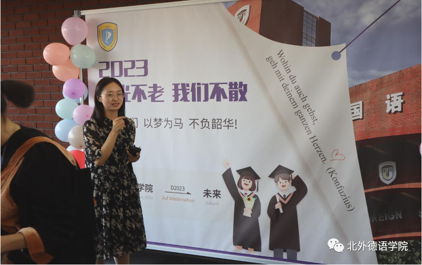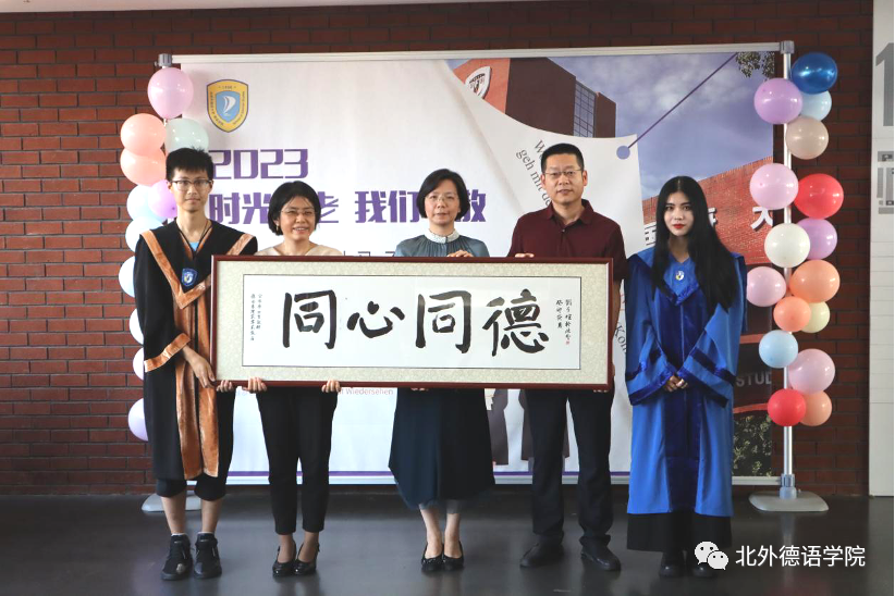党总支书记、院长吴江寄语2023届毕业生:在社会大课堂的历练中养成豁达开朗的胸襟,做到“心有山海”;面对困难和挫折时勇敢坚毅,不忘初心,坚持“心有所向”;牢记北外德语人“十四人一条心”的团结精神,永远“心有大德”。