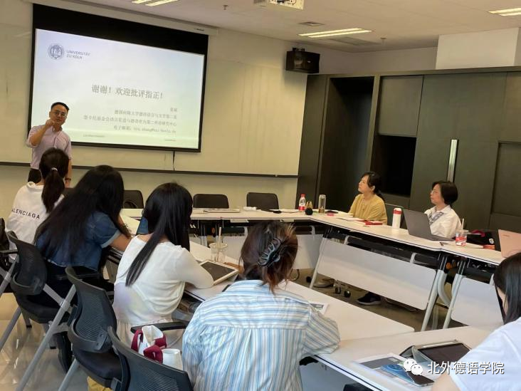 在交流讨论环节,张斌和参会师生就认知构式语法的前景、在德语教学中的实践应用、语言的未来发展等问题进行了充分的讨论,现场气氛热烈。