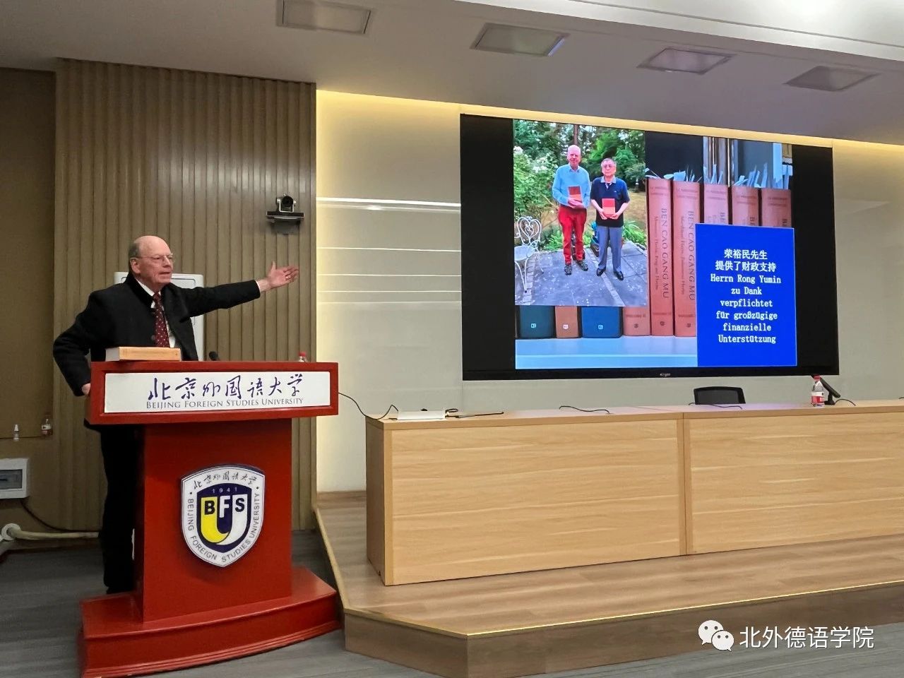 2023年10月18日下午,北外德语国家讲堂系列报告“中医古籍翻译的体会与心得——以《本草纲目》的翻译为例”在北京外国语大学东院晨读厅成功举办。报告主讲人为德国著名医史学家、翻译家文树德教授(Prof. Dr. Paul U. Unschuld),专攻中、欧医学及生命科学比较史,尤擅长医学思想史、伦理史研究。文树德教授夫人文淑德女士(Ulrike Unschuld)、六合宝典下载ios