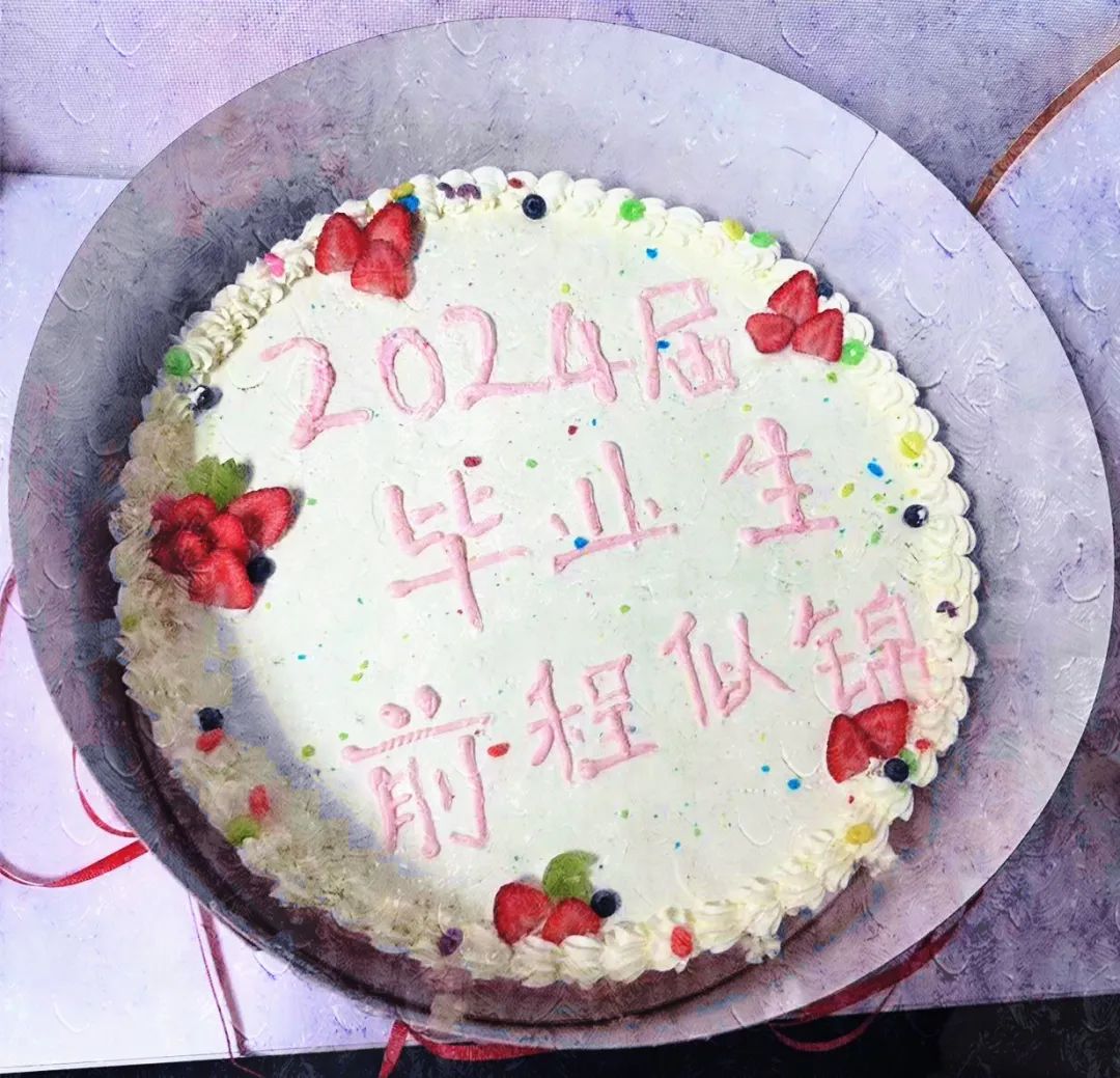 毕业生们欢聚一堂,享用美味的毕业蛋糕,合影留念,留下最美好的瞬间,共叙依依惜别之情。