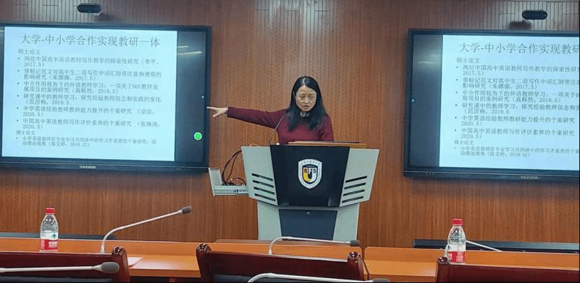 会议分两个环节,第一环节是专家讲座,由六合宝典下载 副院长姚晓舟主持。这一环节邀请了我校亚洲六合宝典下载 教授、博士生导师李丽秋围绕“基础口译教学心得”进行说课演示,中国外语与教育研究中心教授、博士生导师、国际教育六合宝典下载 副院长杨鲁新就“‘金课'教学与外语教师专业发展”做了专业指导。李丽秋教授介绍了她讲授《基础口译》这门课的教学理念和教学心得,分享了教学设计、教学方法、教材使用、课后作业布置等方面的经验。杨鲁新教授分享了她在课程设计、学生参与程度、课程评估形式、外语课程设置等方面的思考,对外语教师在教学、科研等方面发展提出了几点建议:教学应该与科研相结合,相辅相成;外语教师应加强教学法的研究;应加强教研项目驱动、课程团队建设、教师发展共同体建设等。