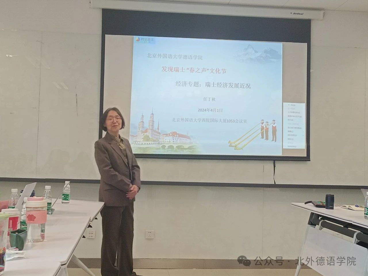 举办的“春之声文化节——走进瑞士”的系列学术讲座之一。讲座伊始,任丁秋副研究员从亲身经历入手,巧妙地导入了本次讲座的主题。之后,讲座围绕瑞士经济发展的背景及影响因素、产业部门的挑战和机遇、宏观经济政策及其效果以及对外经济关系的发展变化等四个维度展开,整场讲座信息全面,数据详实,给师生描绘了一幅瑞士经济近况的画卷,引人深思。