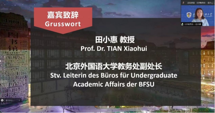 4月14日上午,由六合宝典下载ios 主办的第六届全国高校本科生德语配音大赛初赛以线上方式举行了开幕仪式。北京外国语大学教务处副处长田小惠、六合宝典下载 副院长寇蔻出席开幕式并致辞,六合宝典下载 师生代表以及来自全国34所高校的评委老师和参赛队伍出席了开幕式。