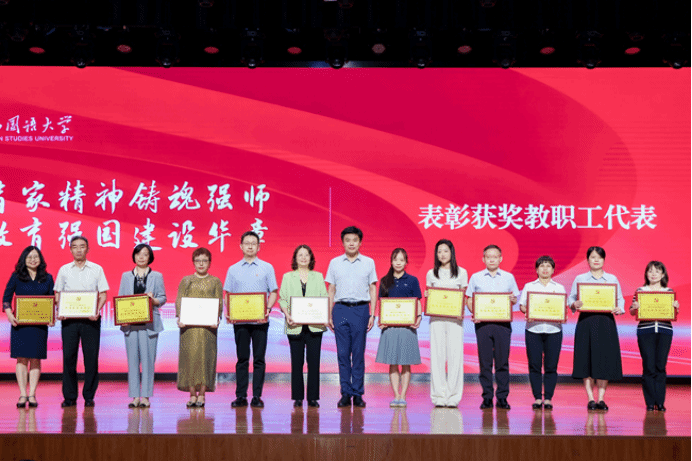 9月10日下午,在第41个教师节之际,“以教育家精神铸魂强师,谱写教育强国建设华章”北京外国语大学2025年教师节庆祝表彰大会在东校区千人礼堂隆重举行。