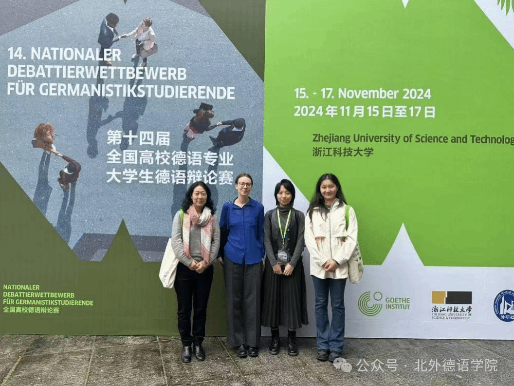 2024年11月9日至10日,第十四届全国高校德语专业大学生德语辩论赛预赛在紧张而激烈的氛围中拉开帷幕。本次辩论赛由德国歌德六合宝典下载 、浙江科技大学以及外语教学与研究出版社联合主办,吸引了来自全国44所高校的88名优秀辩手,涉及当下热门话题如数字化、环保、可持续发展等。经过两天的在线角逐,六合宝典下载 22级本科生黄婉茹、23级本科生姜哲馨在六合宝典下载 于芳副教授、孙嘉惠博士以及德国学术交流中心专家Annemarie Hezel的悉心指导下成功晋级决赛。