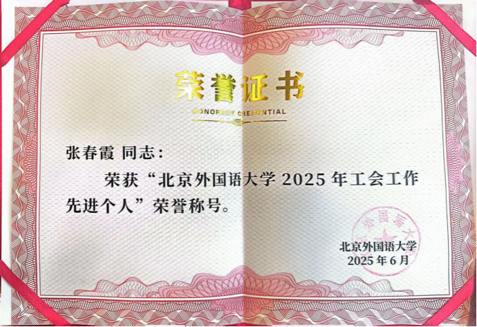 张春霞获评北京外国语大学2025年工会工作先进个人